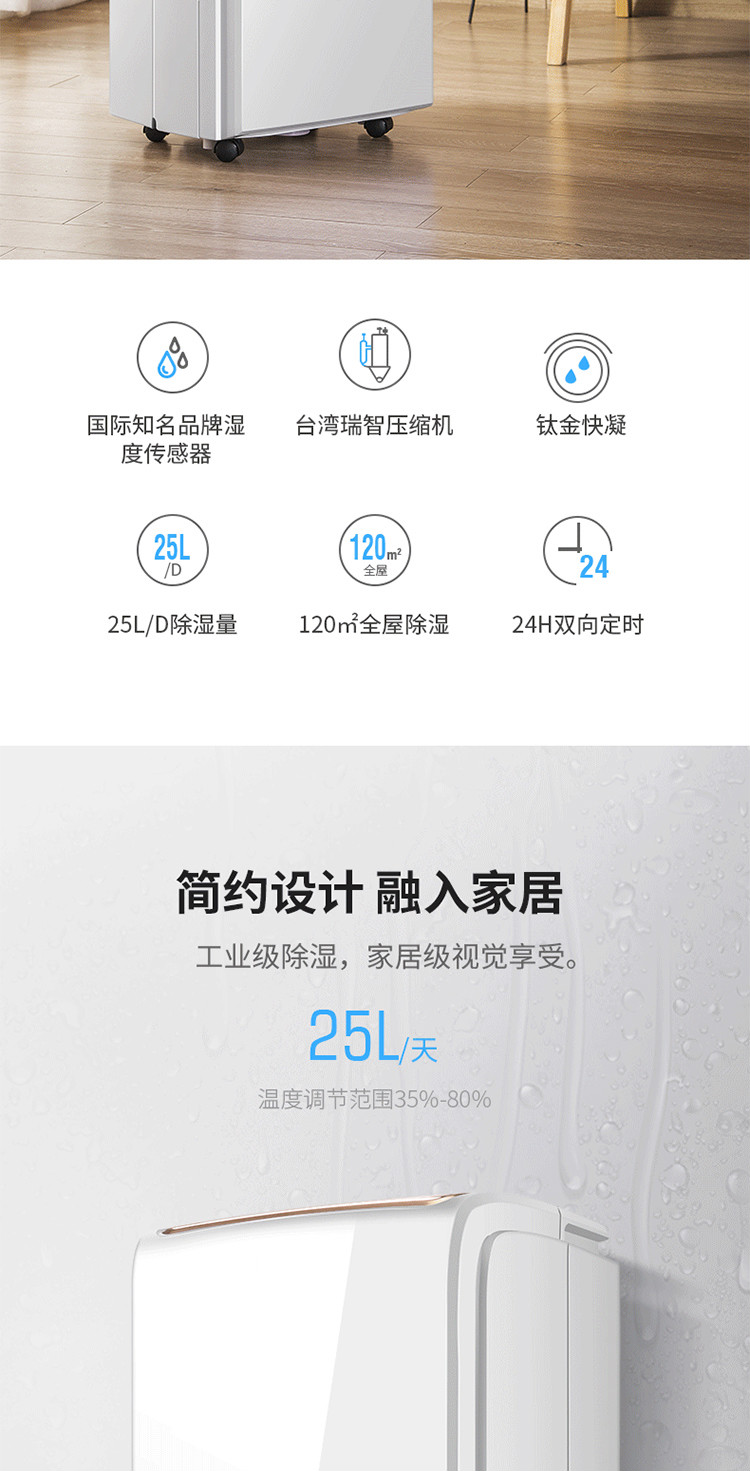 TCL除湿機DET 25 EP家庭用騒音低減衣類乾燥除湿機/除湿器チーターゴールド技術デジタルト表示スト恒湿白